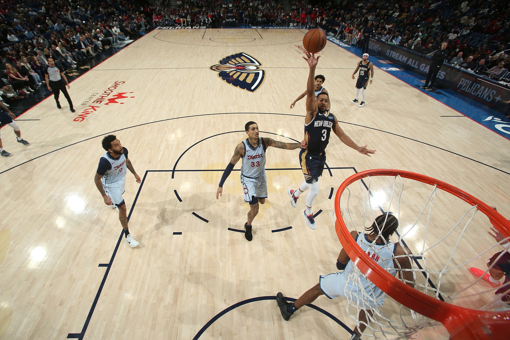 此役,CJ-麥科勒姆首發(fā)出戰31分鐘,27投18中(三分16中10),罰球4中4砍下平生涯最高的50分(2018年2月1日在開(kāi)拓者時(shí)拿到過(guò)50分),外加3籃板2助攻,正負值高達+21。