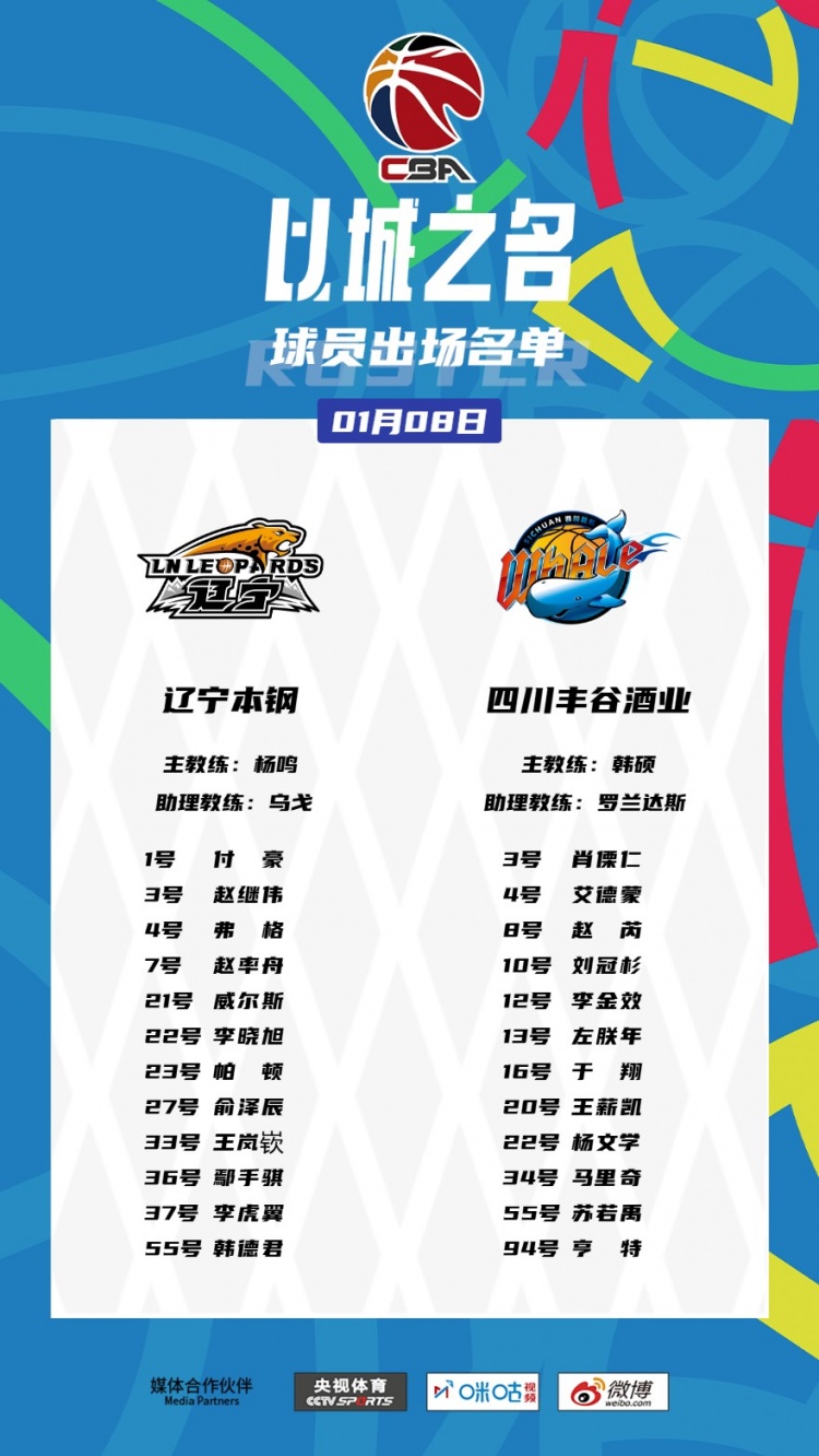 賽前,CBA官方公佈瞭本場(chǎng)大名單,其中遼寧三外援在列,四川同樣三外援。具體如下: