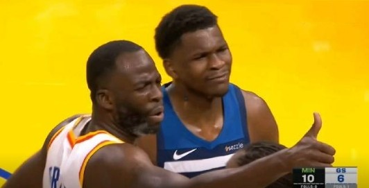 比賽第一節,愛(ài)德華茲推翻庫明加,追夢(mèng)難得一見(jiàn)過(guò)來(lái)當和事佬,他一邊摟著(zhù)愛(ài)德華茲一邊沖替補席豎大拇指。
