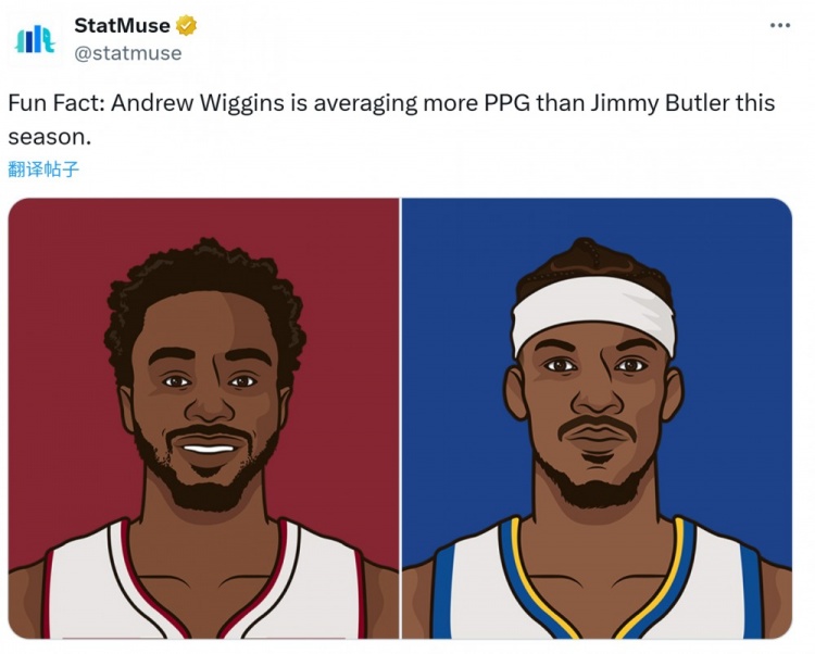 - 美媒:有趣的是 維金斯本賽季場(chǎng)均17.6分比巴特勒高