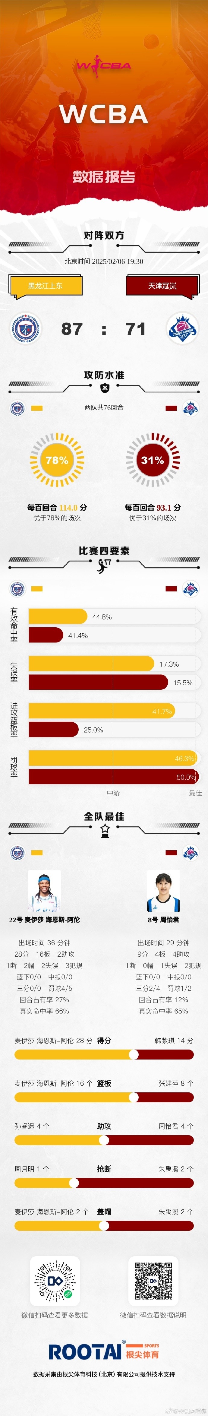 黑龍江上東 87:71 天津冠嵐