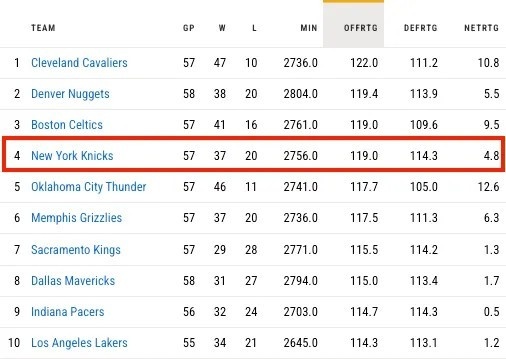 但總覺(jué)得,如果要選一支球隊站上頂點(diǎn),那尼克斯不會(huì )得到什麼票數。因為他們在高端局的表現實(shí)在難以恭維......