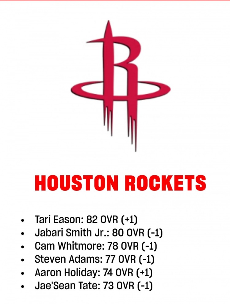 3月7日訊 NBA2K官方本周更新瞭各隊球員的能力值,火箭球員變化情況如下: