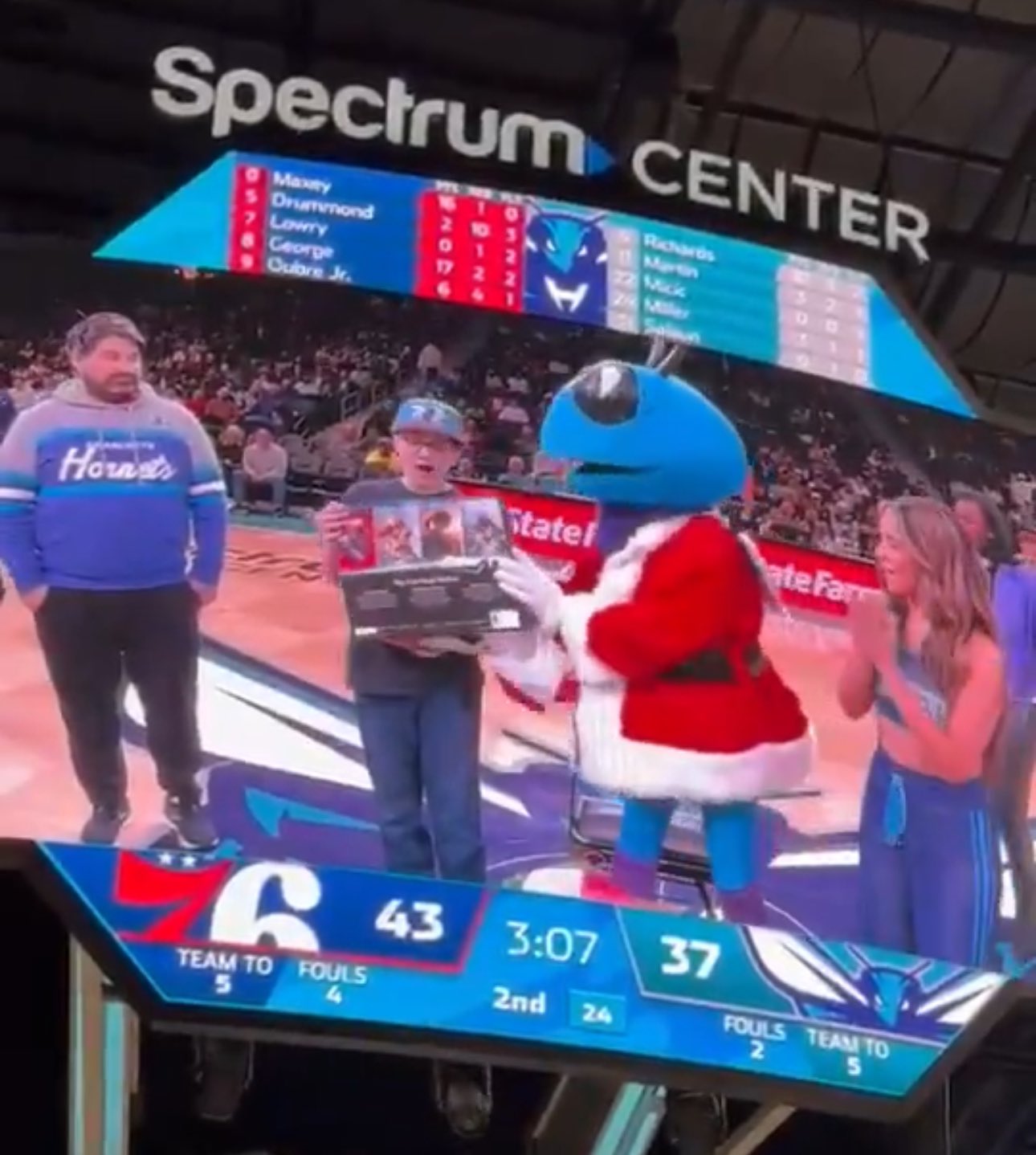 在最近黃蜂和76人的比賽節間活動(dòng)中,一名小球員獲得瞭官方贈送的PS5作為禮物。
