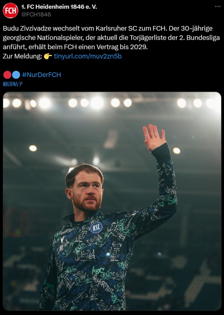 1月4日訊 官方消息,德乙卡爾斯魯厄前鋒齊夫齊瓦澤加盟德甲海登海姆。