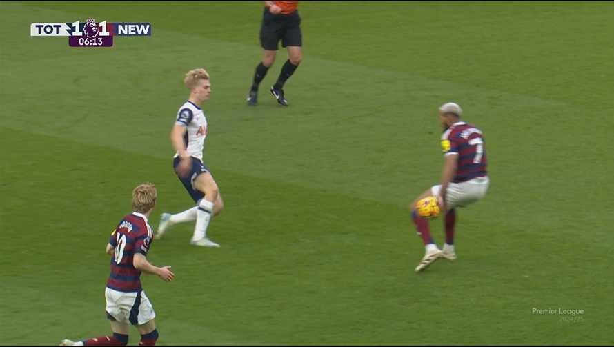 英超官方解釋?zhuān)焊甑堑倪M(jìn)球得到瞭VAR的確認,VAR檢查瞭喬林頓在進(jìn)球過(guò)程中是否存在手球,並認為他的手臂位於身體兩側,處於自然位置,與球的接觸是意外的。