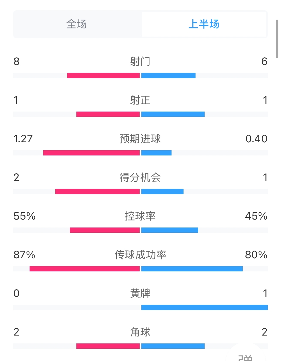 半場(chǎng)數據如圖(左:利物浦 右:曼聯(lián))