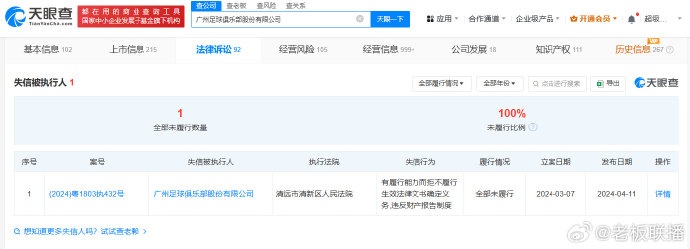 - 廣州隊無(wú)緣準入&解散!廣州隊關(guān)聯(lián)公司去年被列為失信被執行人