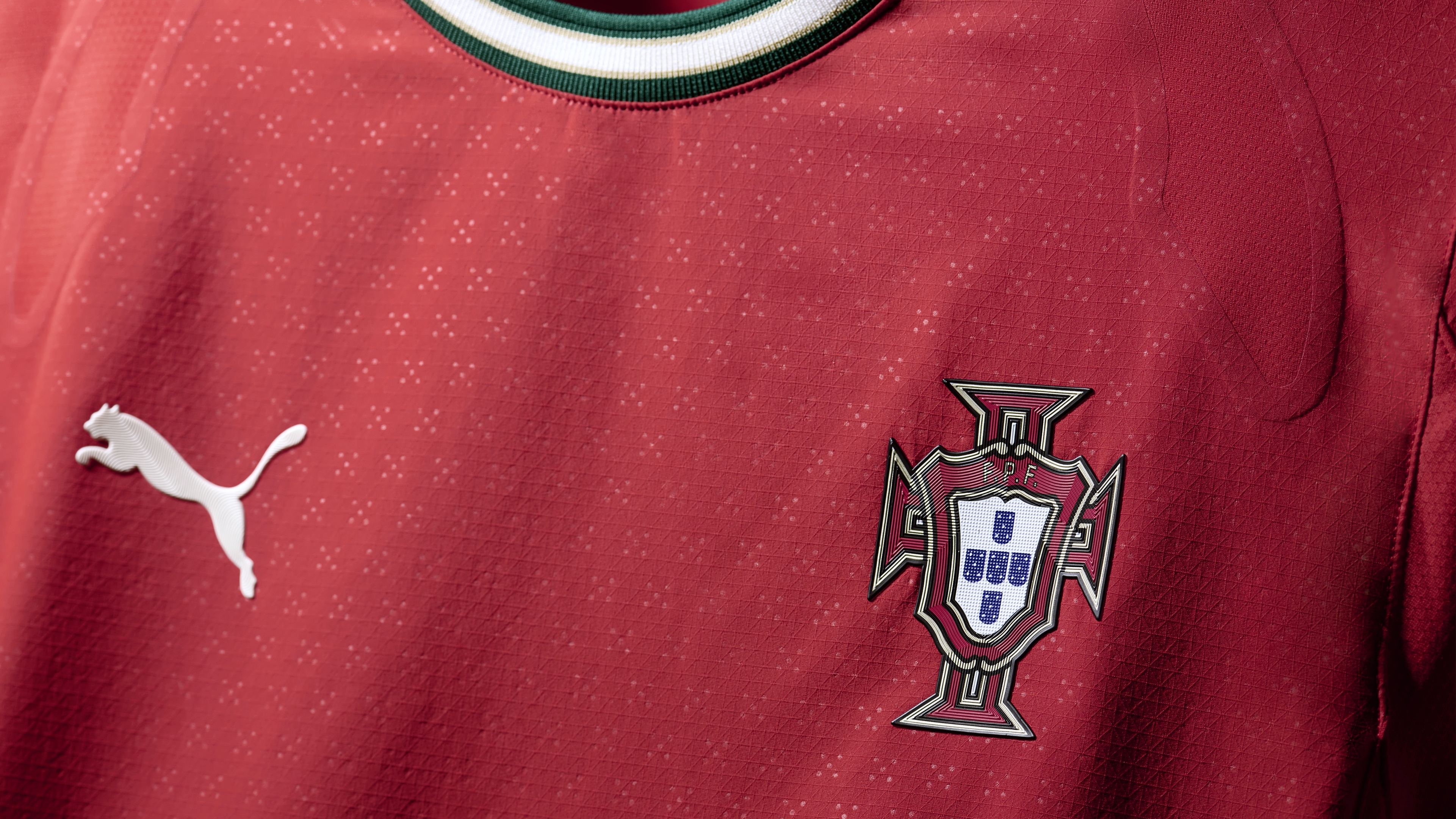 今天,PUMA正式發(fā)售瞭全新的葡萄牙國傢隊球衣系列。球衣選用瞭代表葡萄牙元素的標志性色彩,特別重新演繹瞭葡萄牙國徽中的“五盾” 元素,將其以暗紋的形式融入球衣設計中。