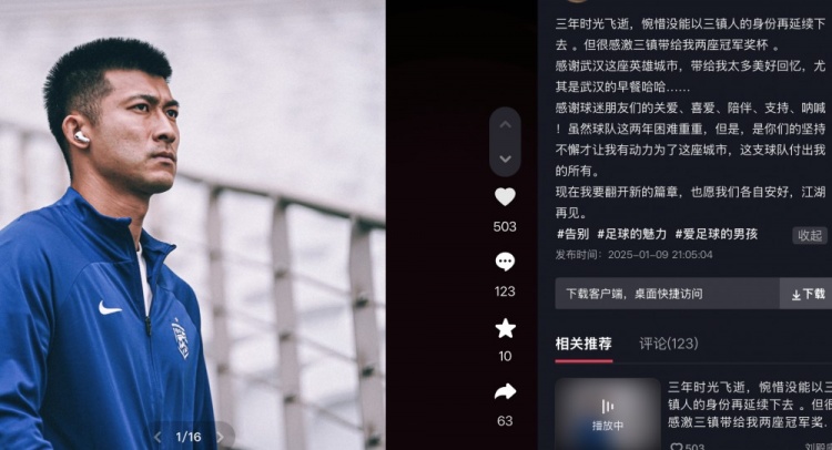 1月9日訊 今天,劉殿座在社媒發(fā)文,正式向武漢三鎮告別。