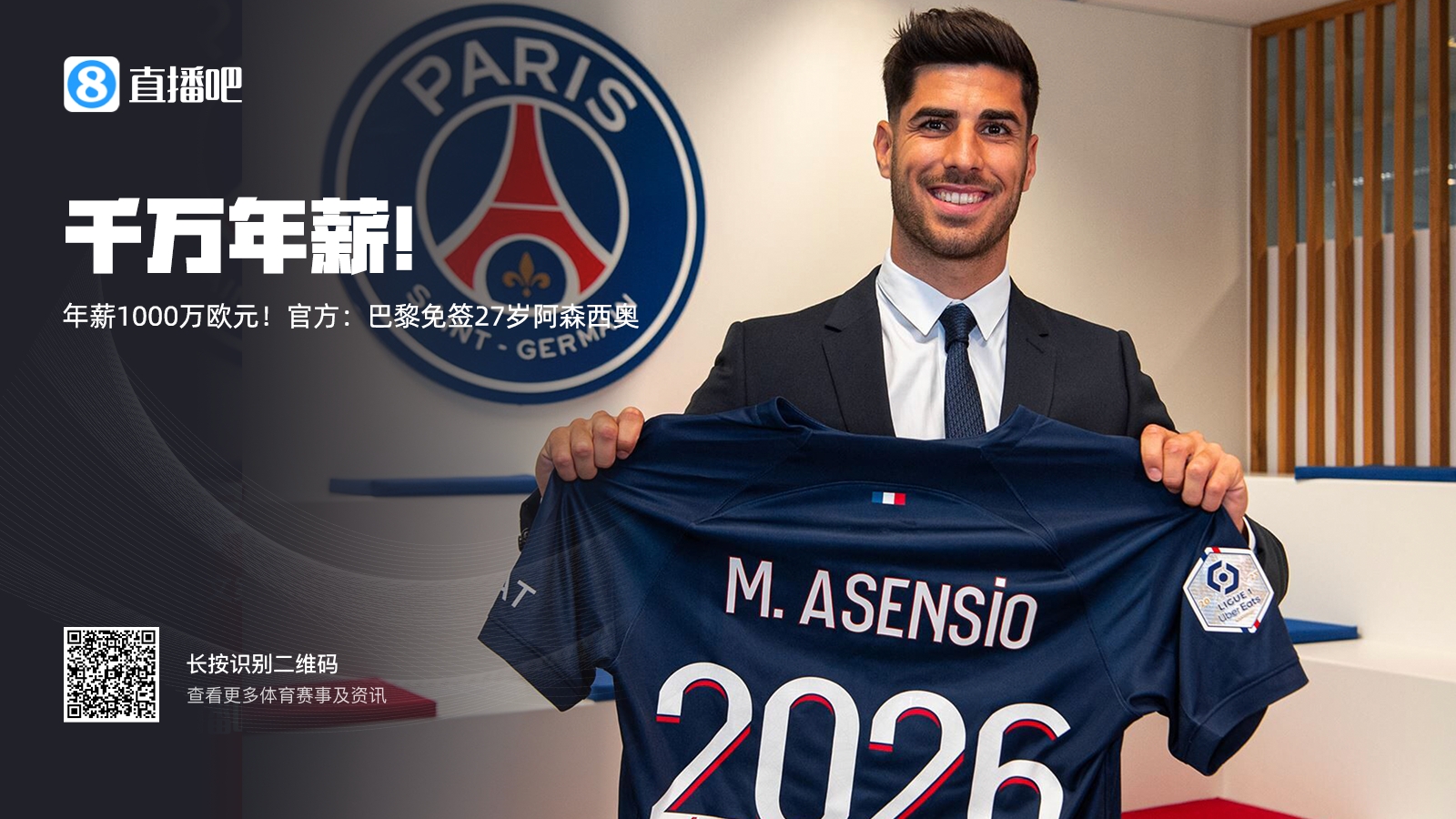 阿森西奧在2023年夏窗從皇馬免簽加盟巴黎,合同為期3年。據名記羅馬諾的報道,阿森西奧在巴黎的年薪接近1000萬(wàn)歐元。