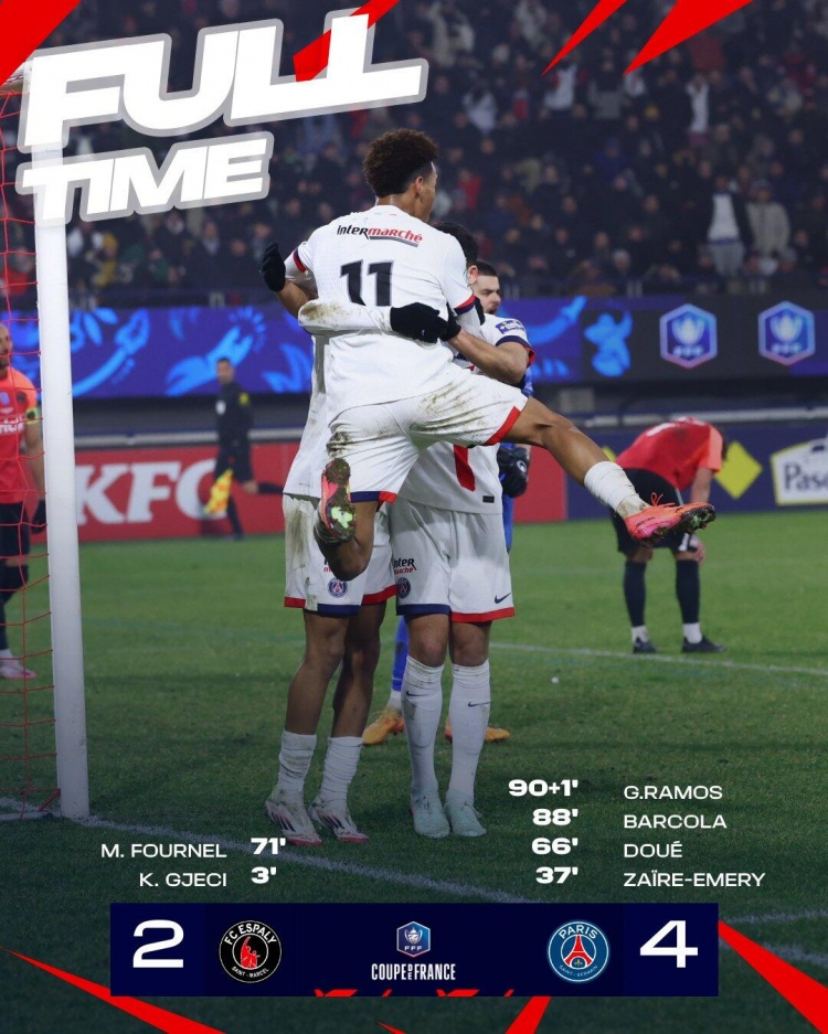 巴黎在法國杯擊敗埃斯帕利聖馬爾塞晉級下輪,巴黎前場(chǎng)多點(diǎn)開(kāi)花。