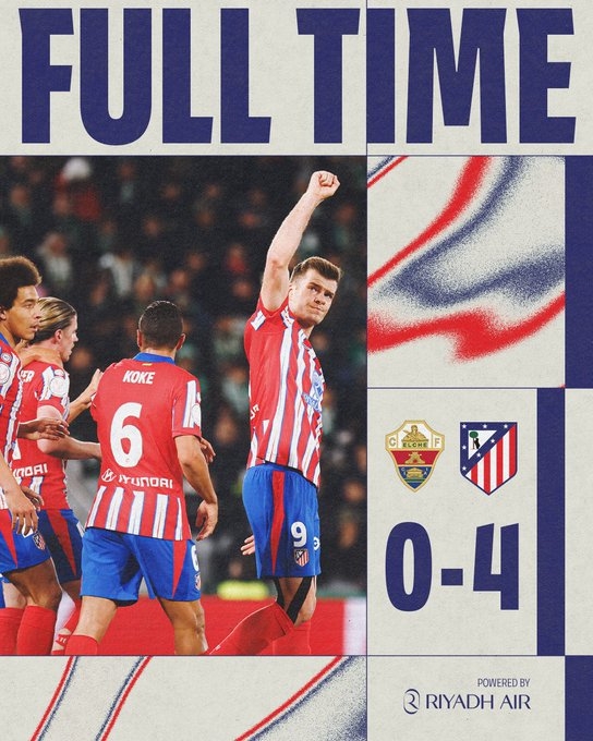 馬競4-0埃爾切晉級國王杯8強,索爾洛特雙響阿爾瓦雷斯替補進(jìn)球。