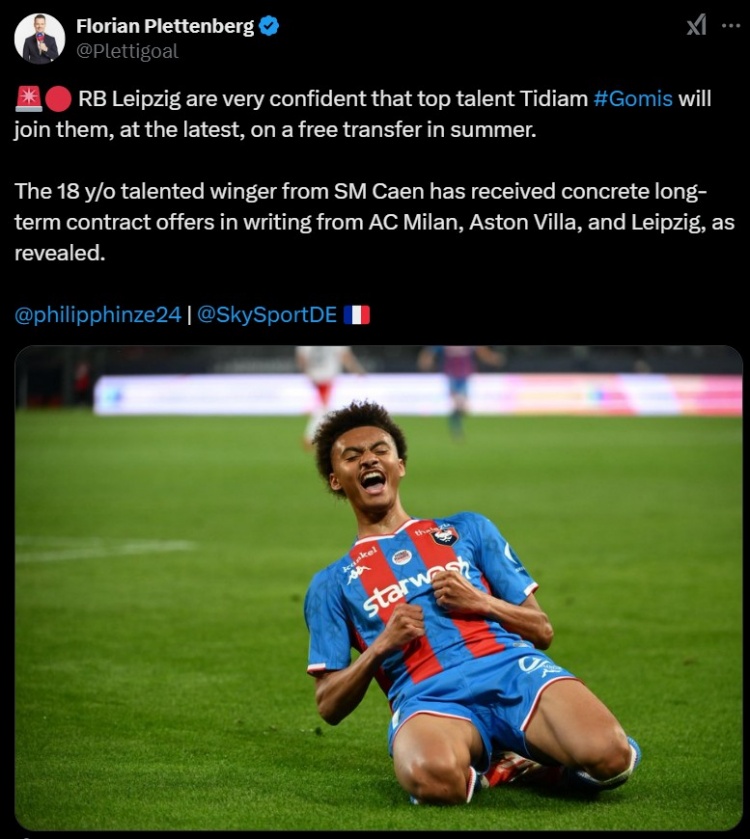 報道稱(chēng)這名來(lái)自法乙聯(lián)賽卡昂球員收到瞭來(lái)自多支球隊的長(cháng)約邀請,包括AC米蘭、阿斯頓維拉以及萊比錫。