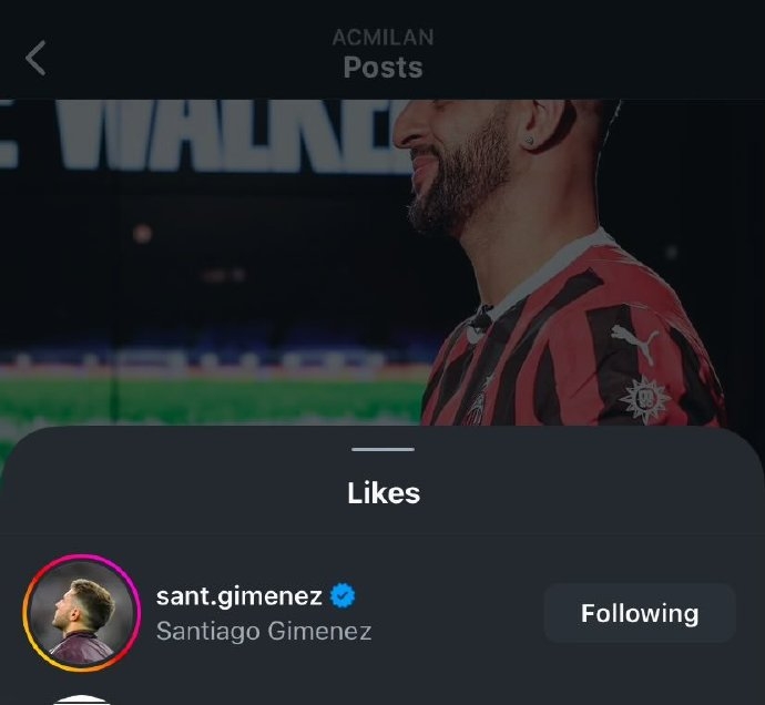 米蘭俱樂(lè )部官方更新社媒動(dòng)態(tài),宣佈以租借的方式簽下曼城34歲邊衛沃克,希門(mén)尼斯為這條動(dòng)態(tài)點(diǎn)贊。
