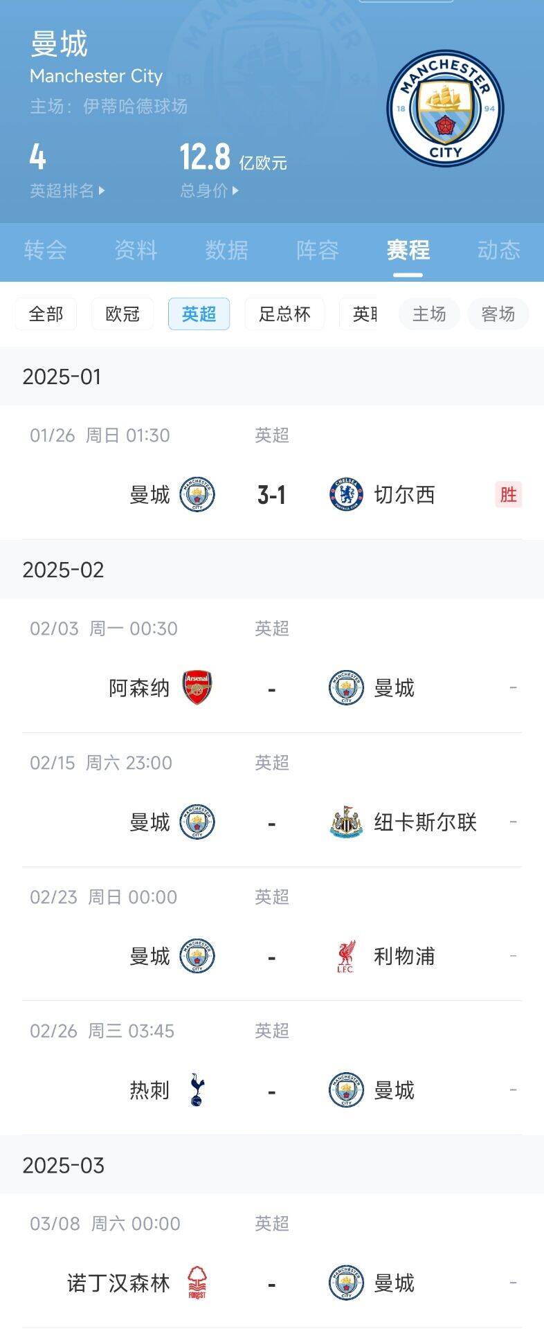狀態(tài)漸漸復蘇的曼城引援也已經(jīng)到位,拿下藍軍隻是曼城“魔鬼賽程”第一站。接下來(lái),曼城將在英超接連對陣除瞭自己之外的英超前5:利物浦、阿森納、諾丁漢森林與紐卡,這期間還有對陣苦主熱刺的比賽。