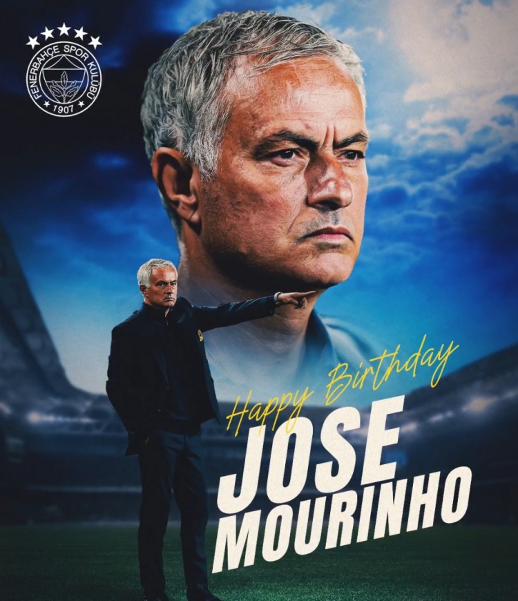 1月26日訊 今天是穆裡尼奧62歲的生日,費內巴切官方更新動(dòng)態(tài)祝福球隊主帥生日快樂(lè )。