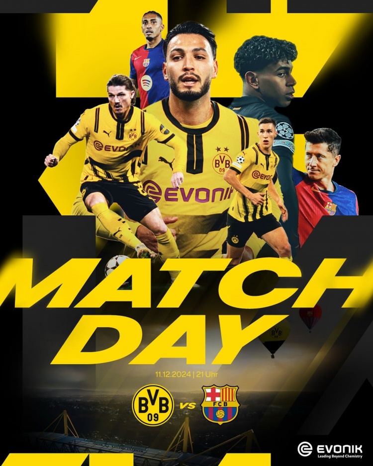 多特官方發(fā)佈瞭此役的海報,兩隊各3名球員出鏡,多特出鏡的球員為薩比策、施洛特貝克、本塞拜尼,巴薩出鏡的球員為萊萬(wàn)、亞馬爾、拉菲尼亞。