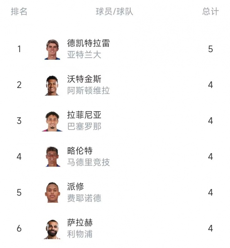 發(fā)布時(shí)間:2025年01月30日 07:30點(diǎn)擊:欄目:足球新聞 1月30日訊 歐冠聯(lián)賽階段比賽戰罷,德凱特拉雷送出5記助攻,排名歐冠助攻榜首位。歐冠助攻榜:德凱特拉雷(亞特蘭大)——5沃特金斯(維拉)——4拉菲尼亞(巴薩)——4略倫特(馬競)——4派修(費耶諾德)——4薩拉赫(利物浦)——4 除特別注明外,本站所有內容均為24直播網(wǎng)整理排版,轉載請注明出處:歐冠助攻榜:德凱特拉雷5助居首,拉菲尼亞、薩拉赫4助 本文標簽: 足球 英超 利物浦 歐冠 薩拉赫 意甲 亞特蘭大 西甲 馬德里競技 巴塞羅那 阿斯頓維拉 荷甲