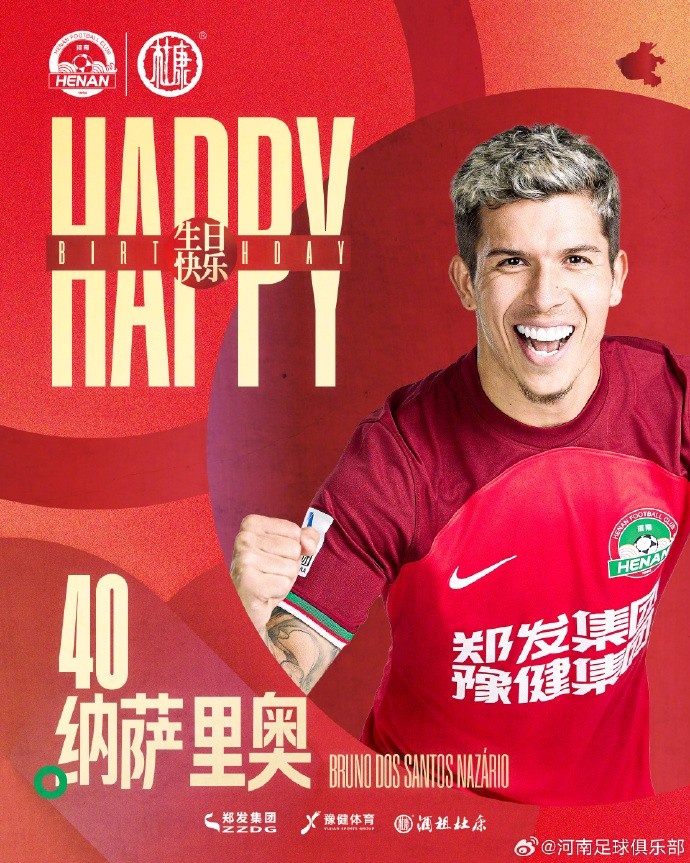 今天是河南俱樂(lè )部酒祖杜康球員納薩裡奧的生日,讓我們一同祝福他生日快樂(lè )! ???