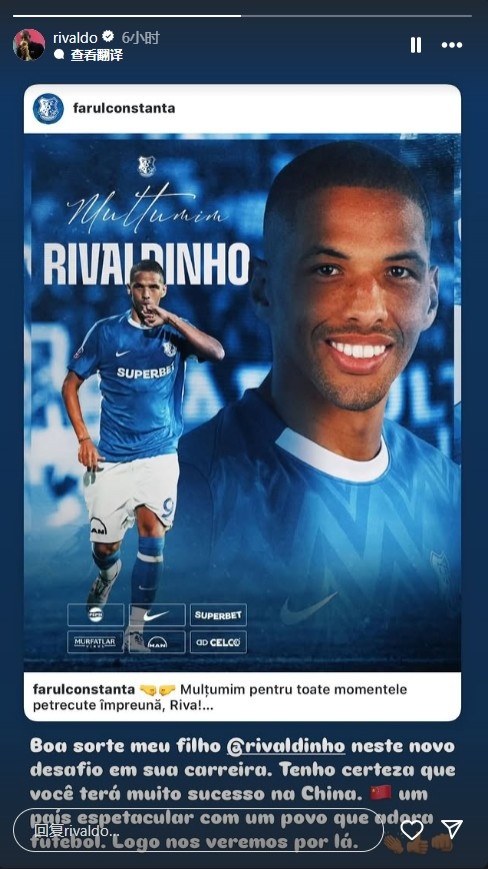 在個(gè)人社媒,裡瓦爾多曬出裡瓦爾迪尼奧加盟青島紅獅的官方照,同時(shí)配文:“祝我的兒子在職業(yè)生涯的新挑戰中好運,我相信你在中國一定會(huì )成功,中國是一個(gè)有著(zhù)熱愛(ài)足球的人民的國傢,很快就會(huì )見(jiàn)面?!?/p>