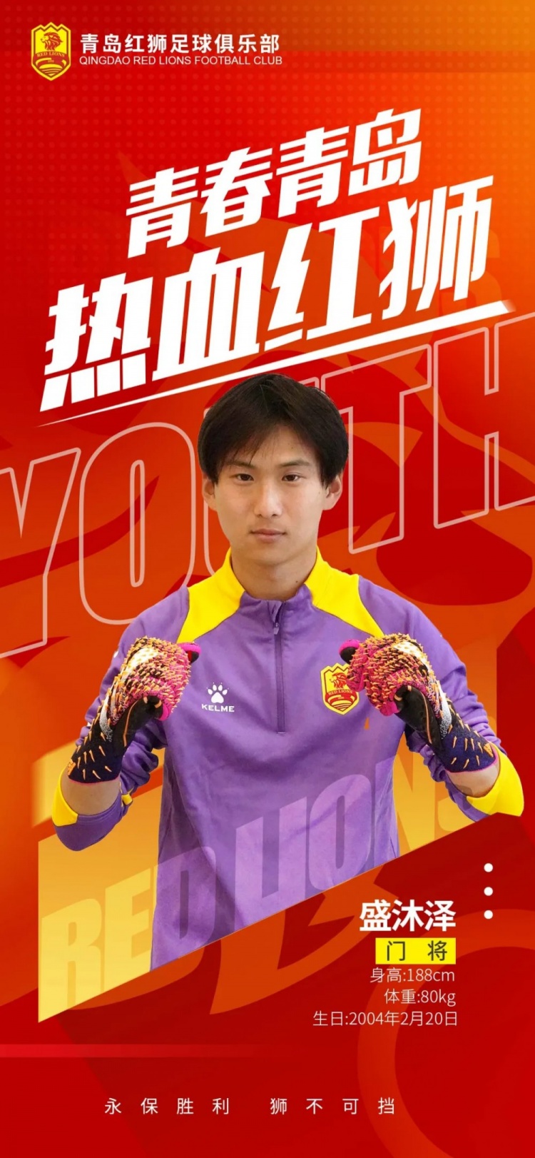 盛沐澤出生於2004年2月20日,場(chǎng)上司職守門(mén)員。2016年進(jìn)入山東魯能足球學(xué)校接受專(zhuān)業(yè)訓練,2022年代表山東泰山隊參加亞冠聯(lián)賽,2023年跟隨山東泰山U21取得聯(lián)賽冠軍,期間多次入選同年齡國傢集訓隊。