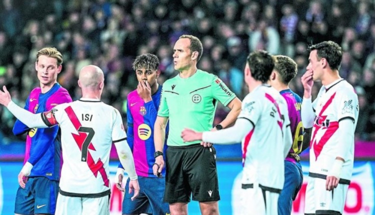 巴薩在本場(chǎng)比賽第26分鐘獲得點(diǎn)球,但在判罰點(diǎn)球之前主裁判梅萊羅-洛佩斯當時(shí)沒(méi)有對西斯明顯摟抱伊尼戈-馬丁內斯的動(dòng)作做出反應,而VAR裁判迪亞茲德梅拉提示瞭主裁判,他認為這個(gè)動(dòng)作為犯規動(dòng)作,而這個(gè)判罰也遭到瞭客隊巴列卡諾球員的齊聲抗議。