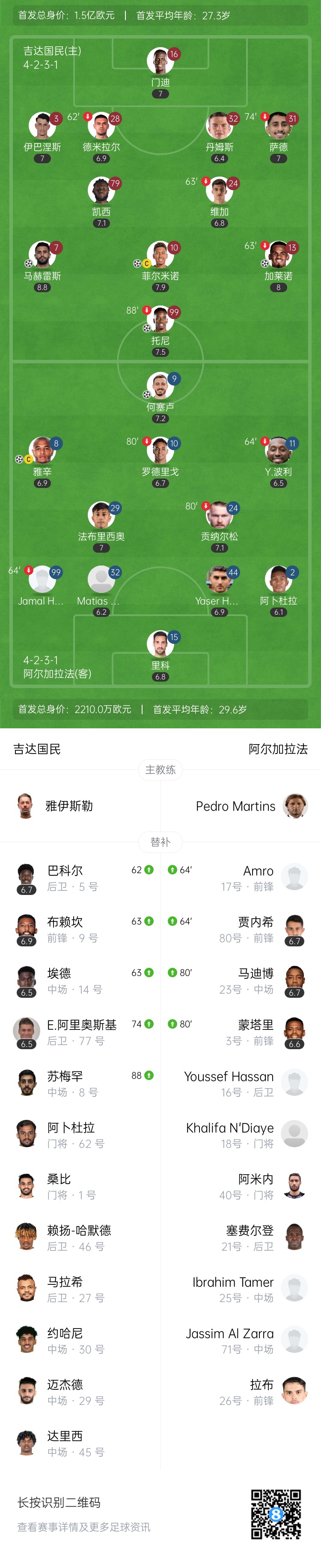 比賽第80分鐘,佈拉希米造點(diǎn)並親自主罰點(diǎn)球命中,加拉法2-4吉達國民↓