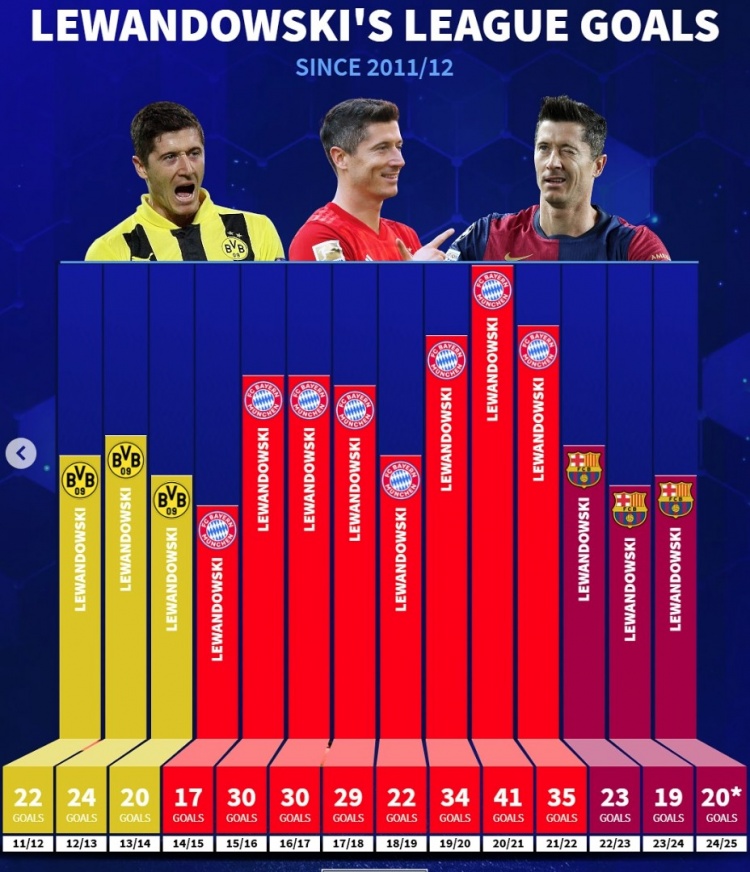 20-21賽季,41球(打破蓋德-穆勒德甲單賽季40球紀錄)