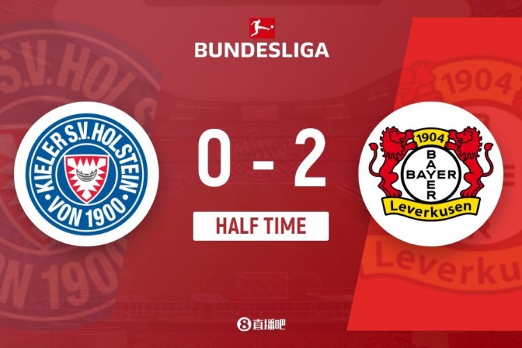 上半場(chǎng)比賽結束,勒沃庫森2-0荷爾斯泰因基爾。