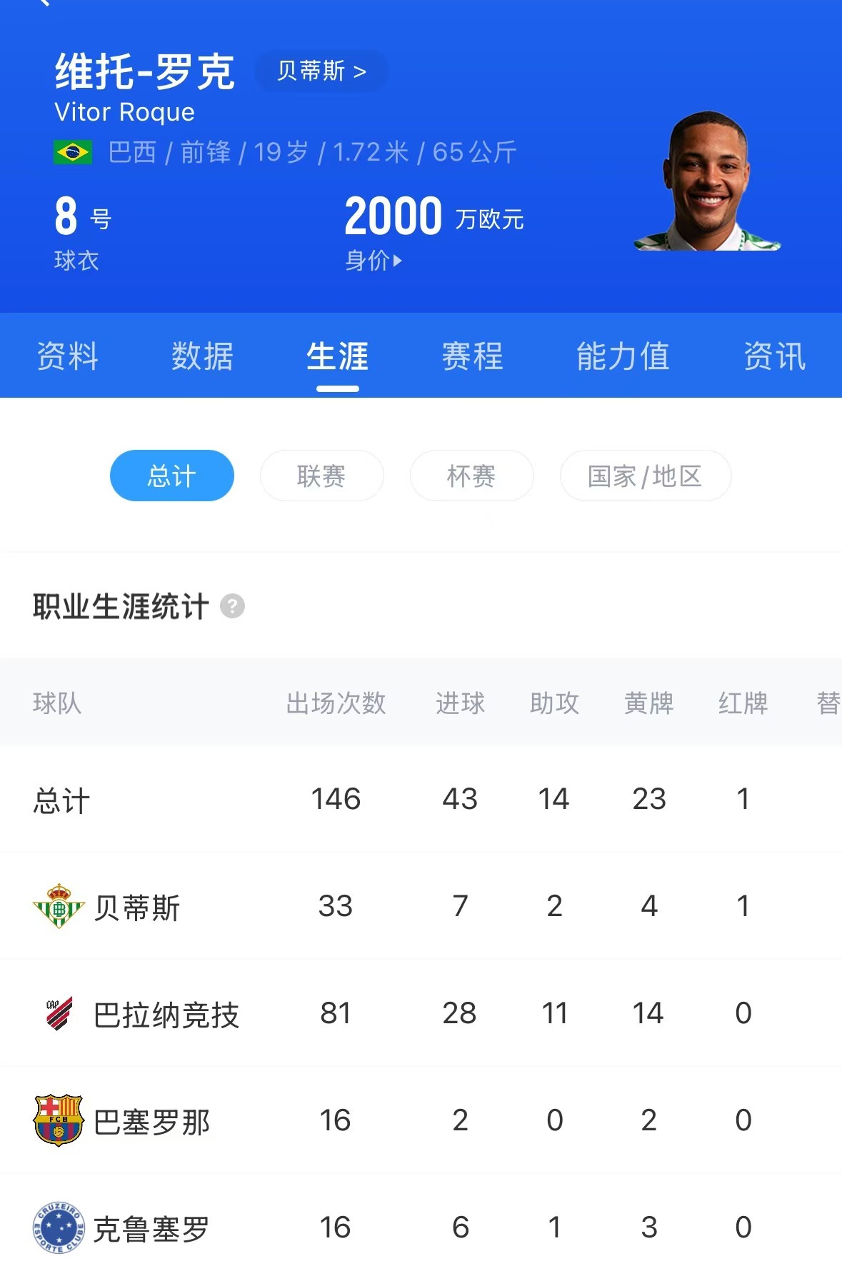 羅克在這個(gè)賽季也被租借到皇傢貝蒂斯,而他本月在6場(chǎng)比賽中僅有1次首發(fā),還吃到紅牌被罰出場(chǎng)。目前球員德轉身價(jià)為2000萬(wàn)歐元。