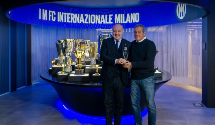 12月14日訊 國際米蘭官方消息,俱樂(lè )部體育部總裁兼CEO馬洛塔領(lǐng)取瞭意大利足球教練協(xié)會(huì )(AIAC)錫耶納分會(huì )頒發(fā)的終身成就獎。