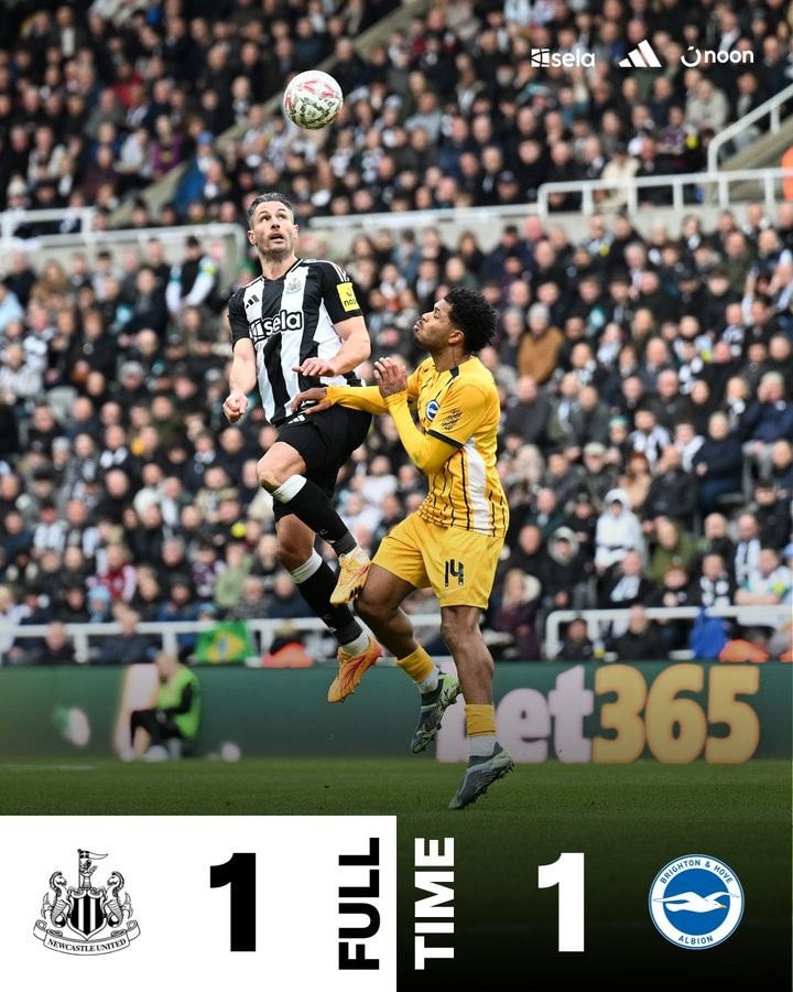 3月3日訊 紐卡和佈萊頓在本輪足總杯常規時(shí)間1-1戰平,兩隊均在最後時(shí)刻被罰下一人。