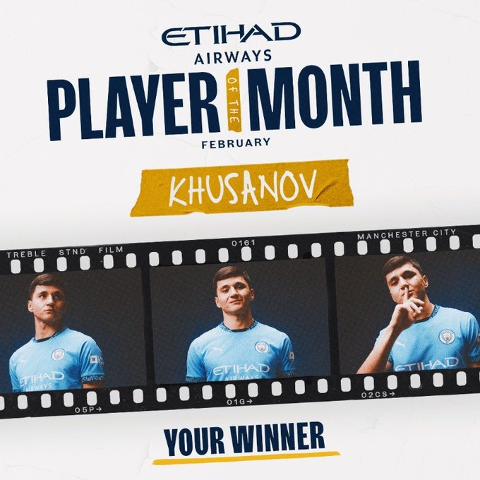 3月7日訊 曼城官方消息,俱樂(lè )部冬窗新援胡桑諾夫當選球隊2月最佳球員。
